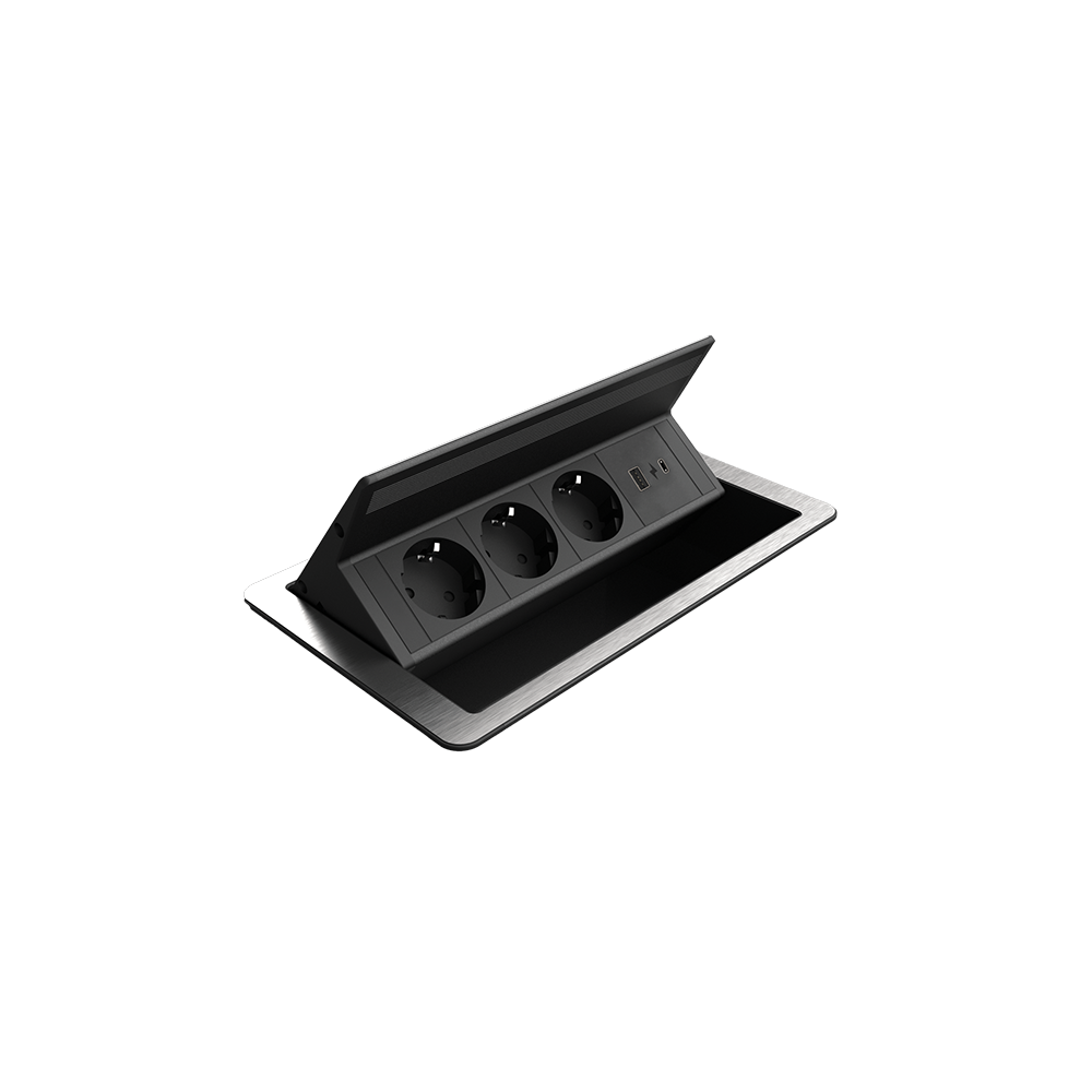 FLIP UP PUSH 3xSHUKO SOCKET+1xUSB A/C 20W, BL/INOX