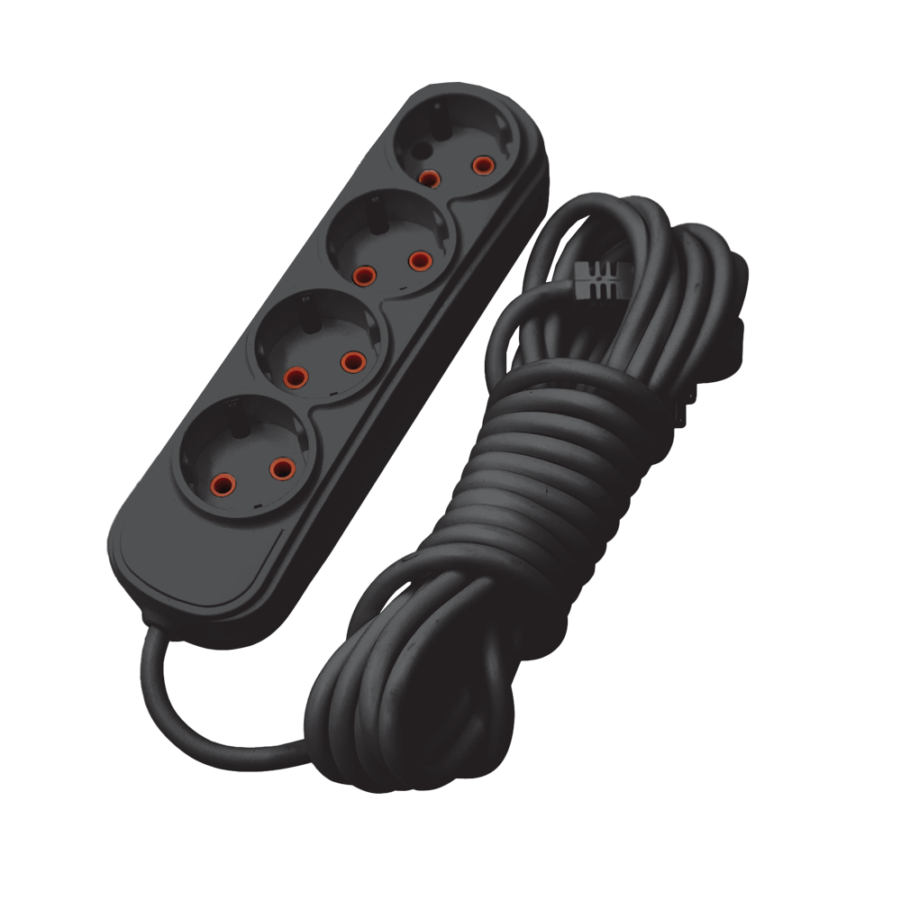 MULTIPLUG FOURFOLD 3M H05VV-F 3G1.5MM2, BLACK