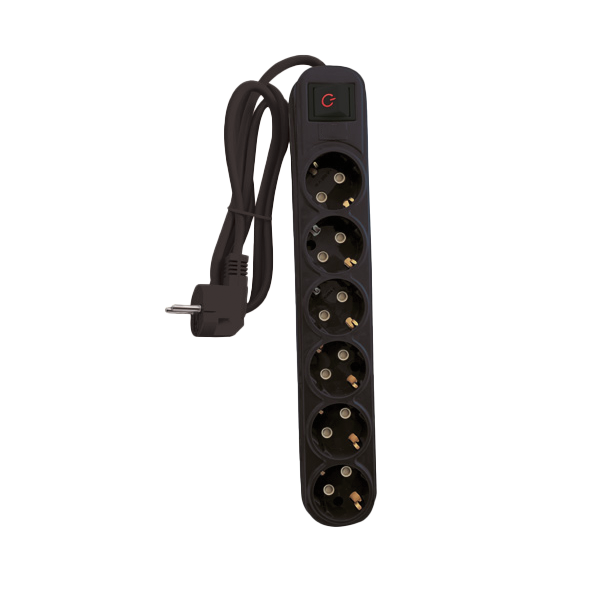 MULTIPLUG SIXFOLD 3M H05VV-F 3G1.5MM2, BLACK