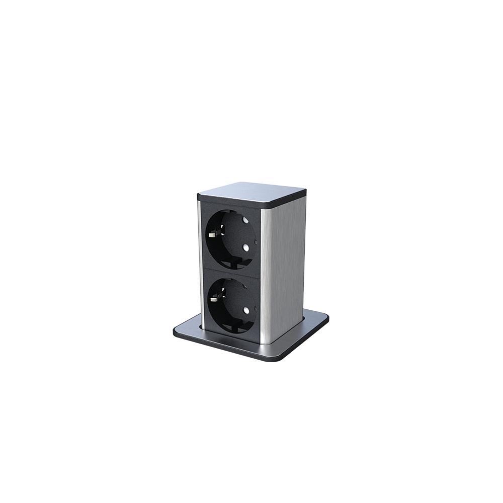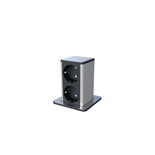 POP UP 2xSHUKO SOCKET WITH 2M CABLE, BLACK/INOX